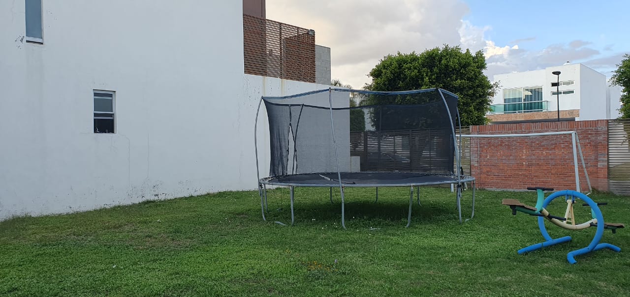 Como el clúster es de forma circular, todos los terrenos son en forma de trapecio, éste mide 11 metros de frente, 25 metros de cada lado y 14 metros el fondo.