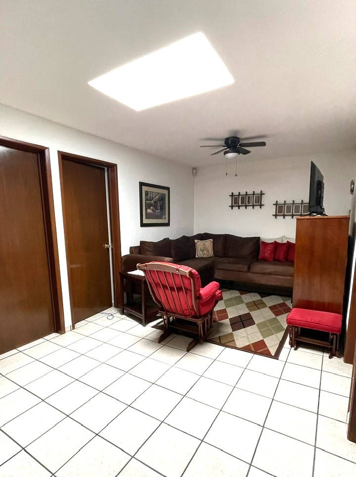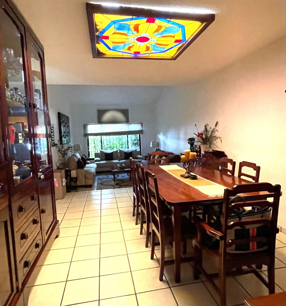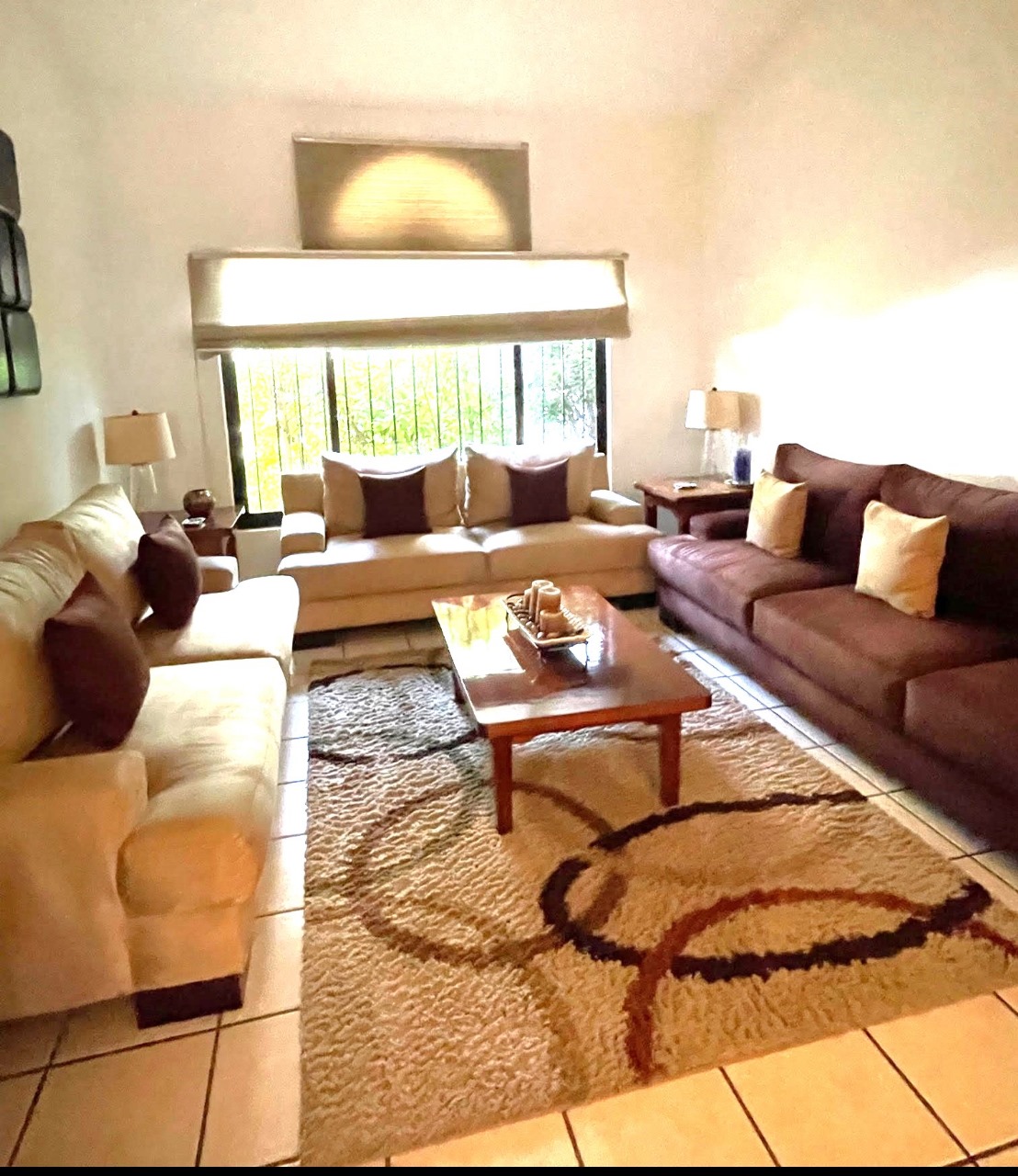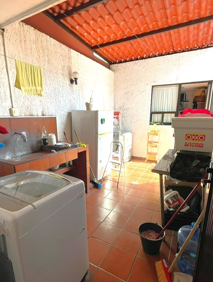 Consta de cochera techada para 2 autos, jardin de ornato junto a cochera, amplias áreas para sala y comedor, patio de lavado y tendido grande, cuarto de servicio con baño completo, cocina integral, sala de TV, jardín de 30 M2 y 3 recámaras muy amplias (para camas king size con burós), la recámara principal tiene baño completo y las dos secundarias comparten baño.